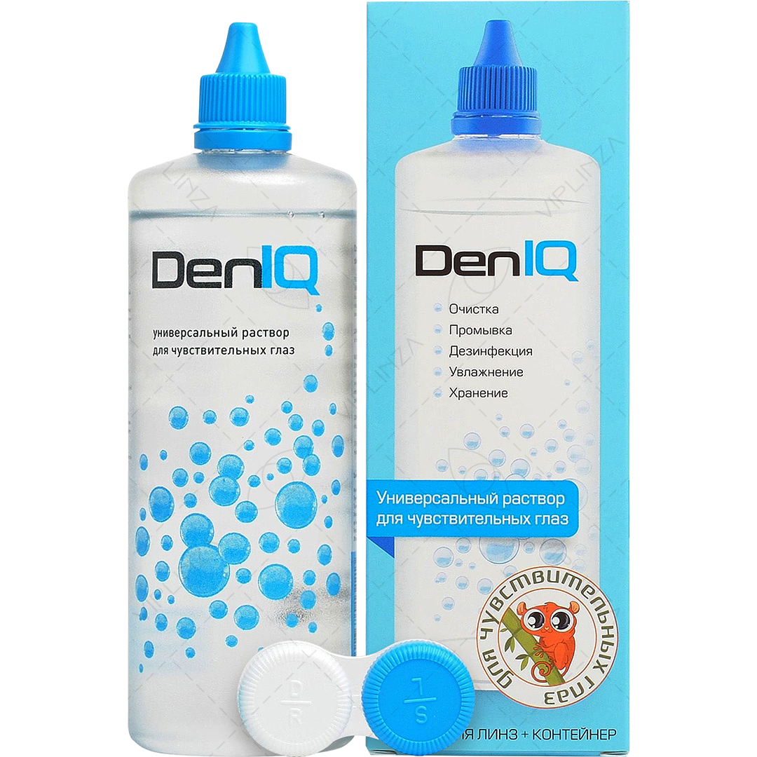Многоцелевой раствор DenIQ 360 мл предназначен для ежедневного ухода за контактными линзами. Его рН приближен к рН слезной жидкости, благодаря чему средство рекомендуют пользователям с повышенной чувствительностью органов зрения. Он не оказывает раздражающего действия, так как не содержит химических консервантов.